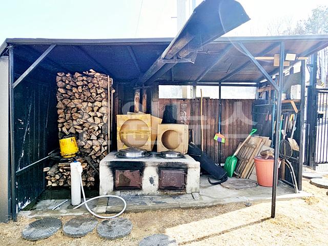 - 평탄지 보강토 토목, 일부 잔디, 디딤석, 야외 가마솥 2개