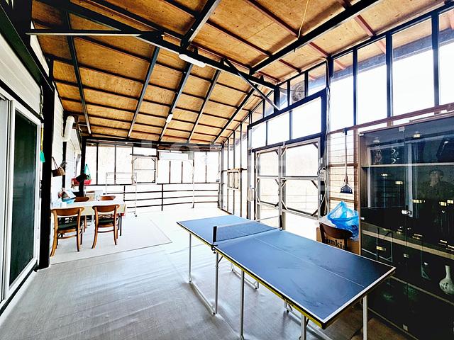 대문쪽으로 거실과 연결된 데크썬룸시공된 공간 있음 ( 약 10평 전후 )