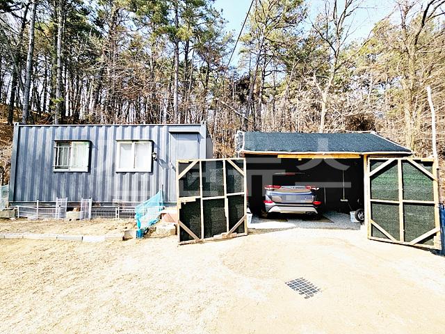 종중임야쪽으로 컨테이너 1동, 목재 임시천막차고 주차1대 공간 있음
