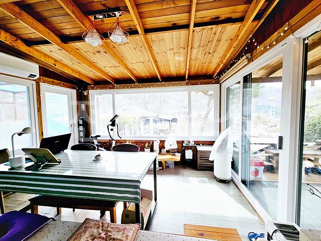 본채 데크위 썬룸 약 4평 시공되어 있음, 거실 벽난로