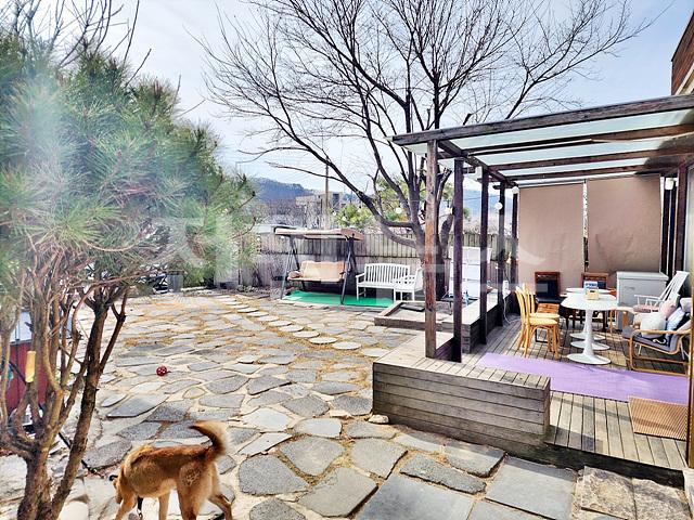 - 데크, 판석, 화단, 조경수, 휀스, 대문