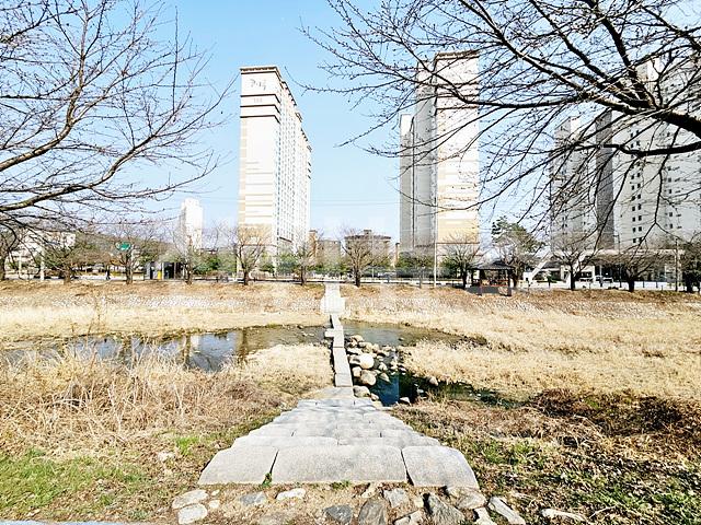 정면 산책로 하천을 앞에두고 뒤쪽으로 임야 접해있음