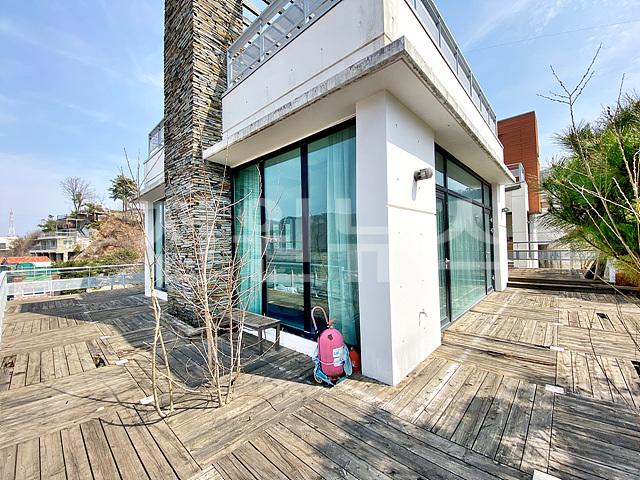 건물 외부 목재데크공간 넓게 있으며, 일부 낡아서 수리 필요함