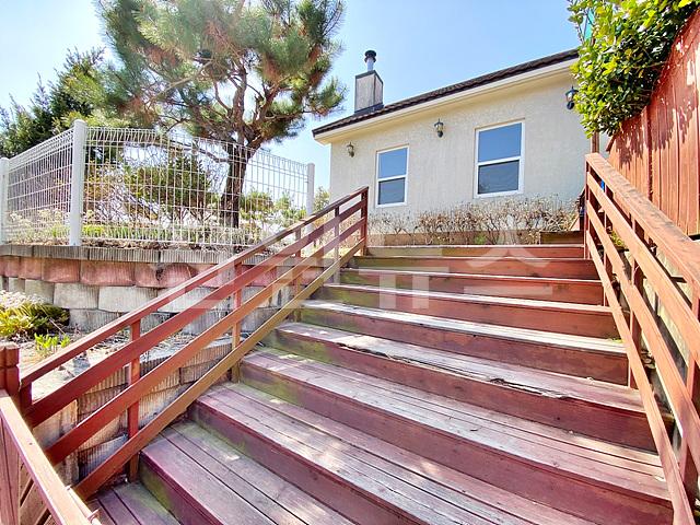 -주차 박스에 주차 후 외부 계단을 통해 주택으로 진입하는 구조