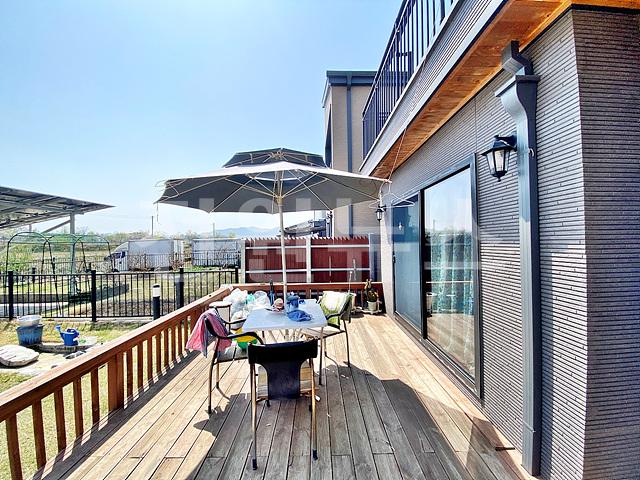 -잔디마당, 디딤석, 목재 테크(주택 앞/뒤)+난간, 텃밭, 야외 수도