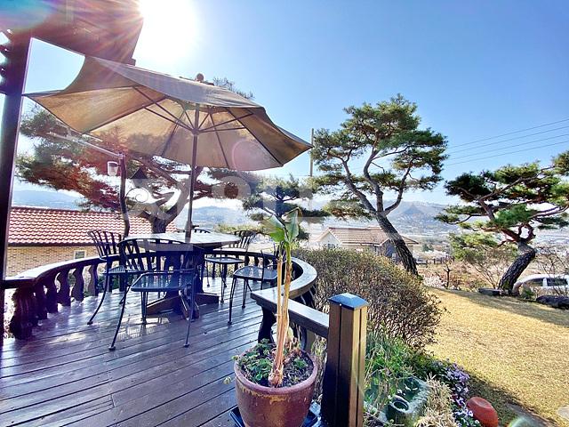 주택 전면과 서측에 목재 데크+난간 설치하고 야외 테이블有